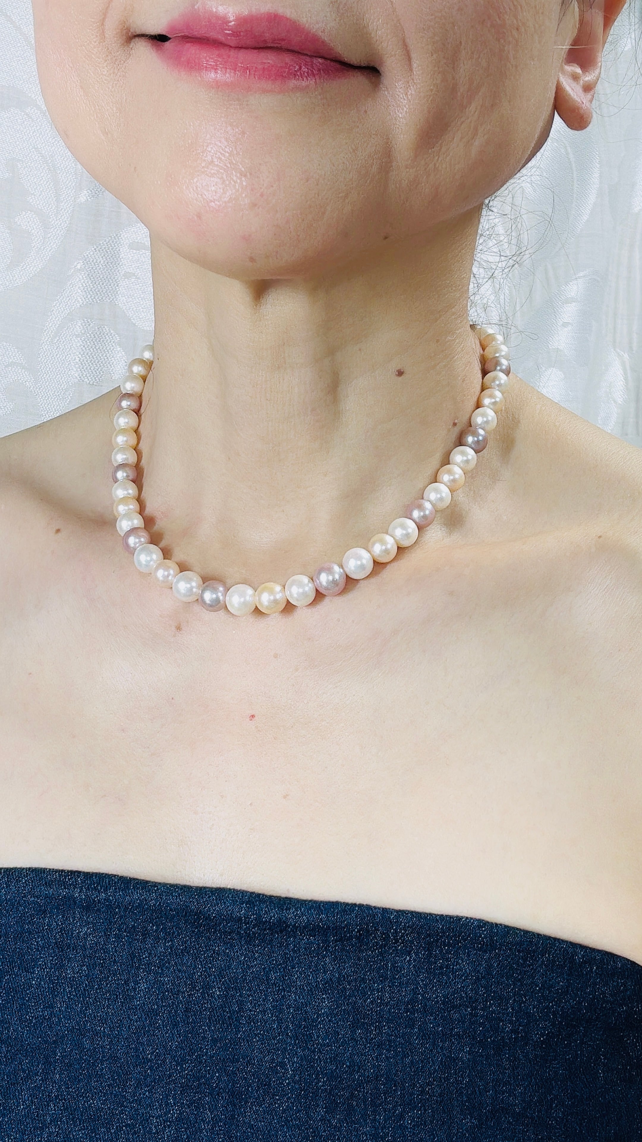 IRIS/L⭐️SV無核湖水真珠マルチカラーネックレス8-9.5mm/42cm