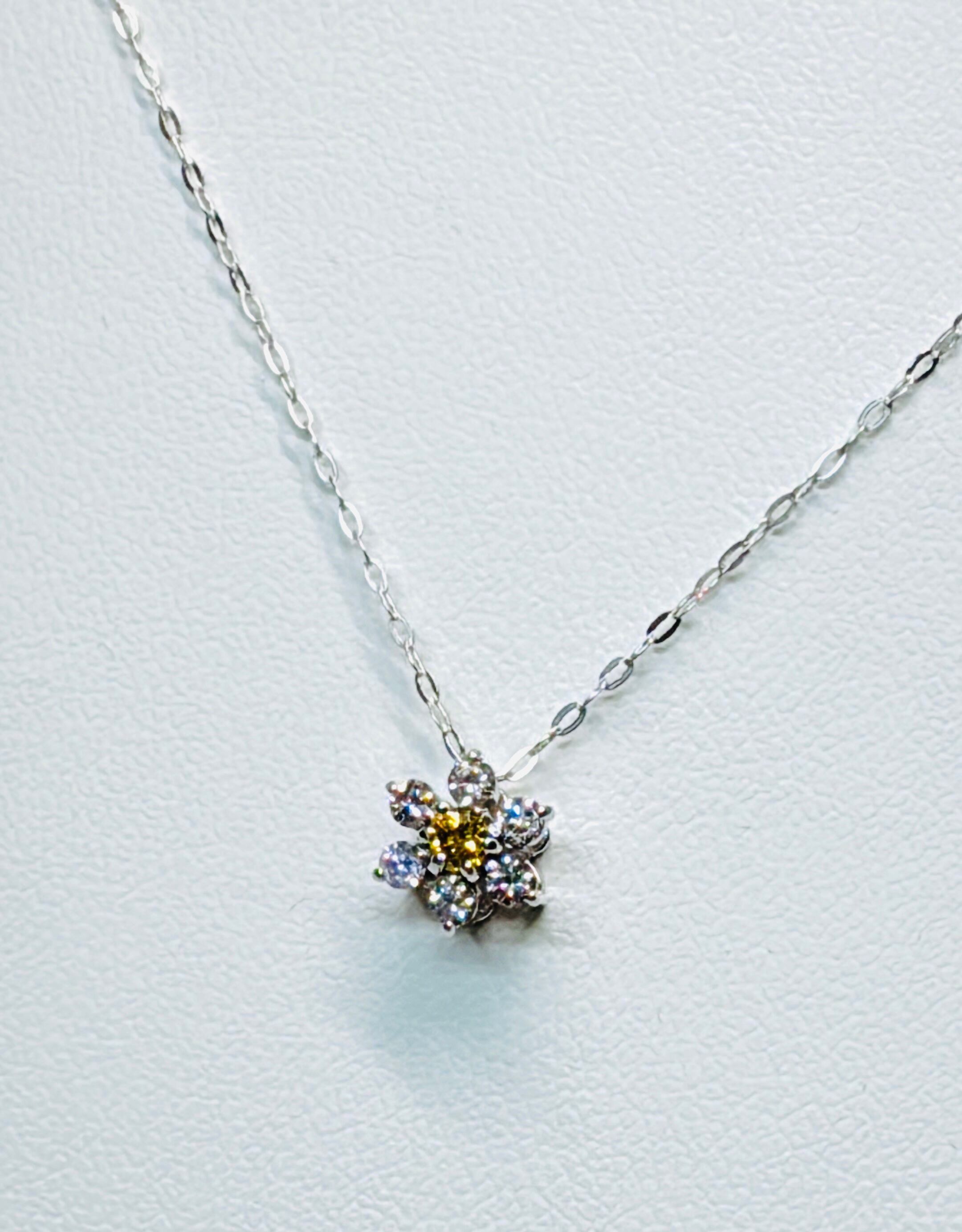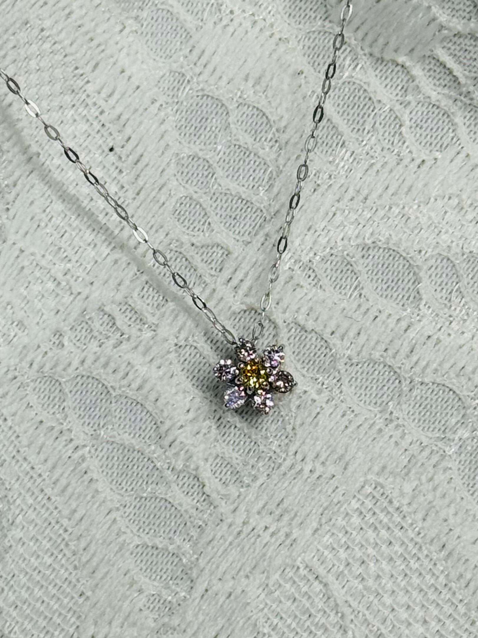 ColofulG⭐️K18WGイエロー&ピンクダイヤモンドフラワーペンダント