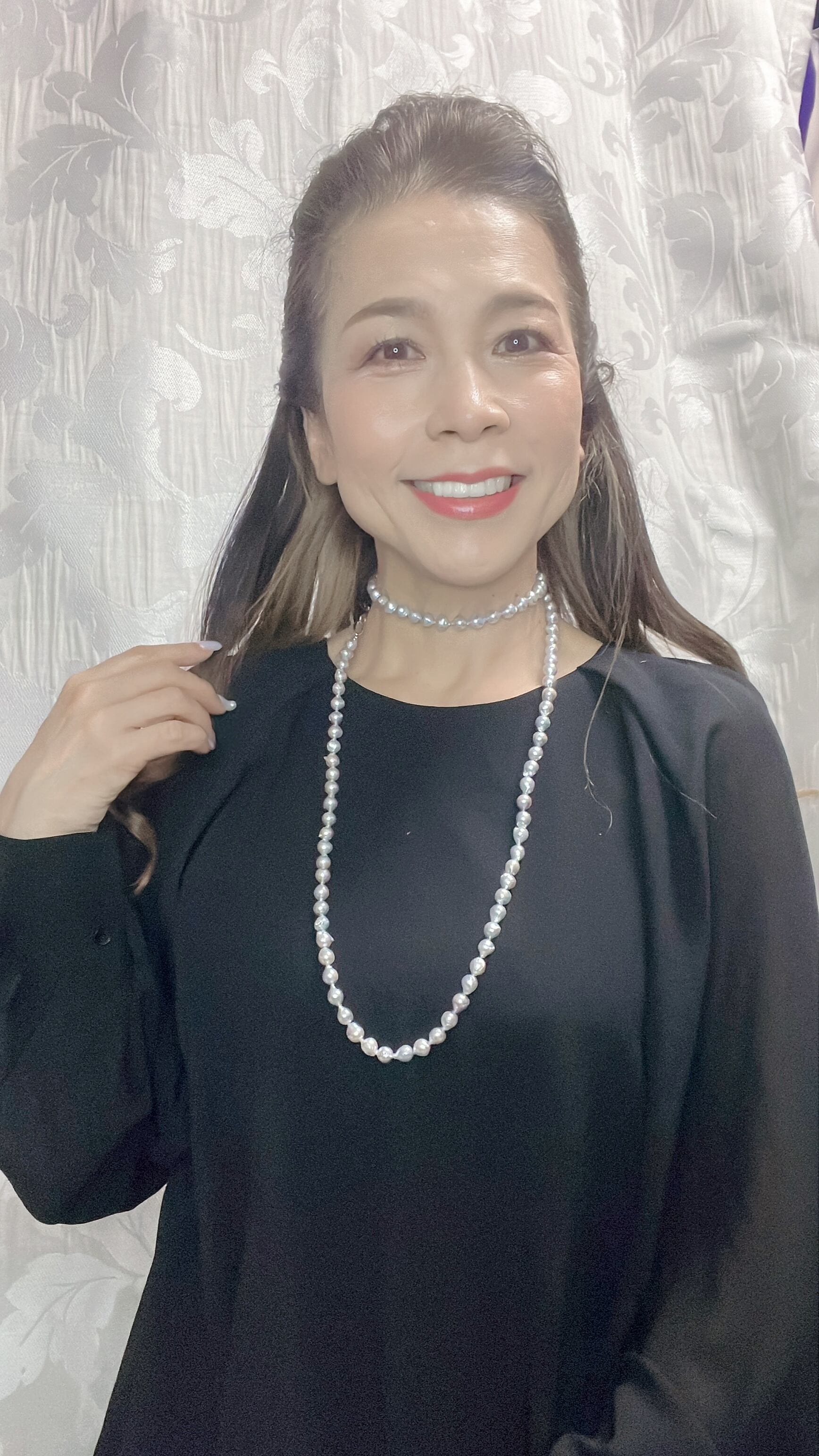 ナチュラル真珠の中でスタイリッシュで都会的に装えるのが、あこや真珠にしかないナチュラルブルーカラー。